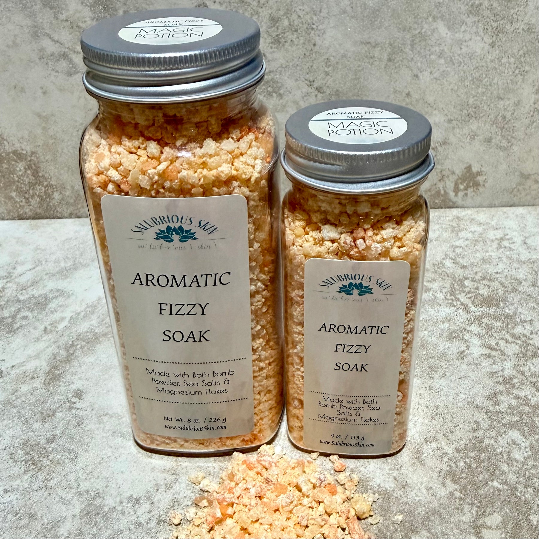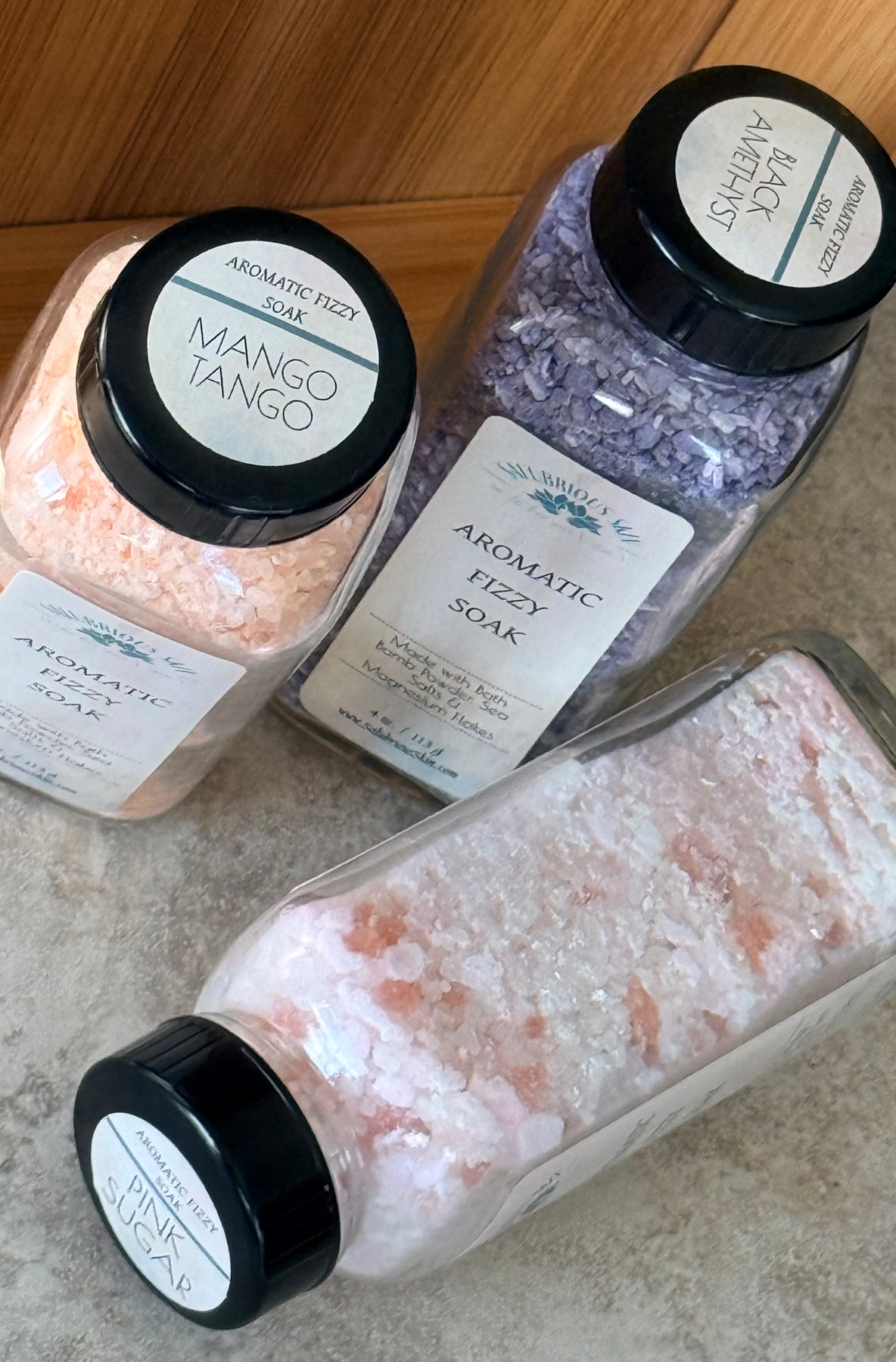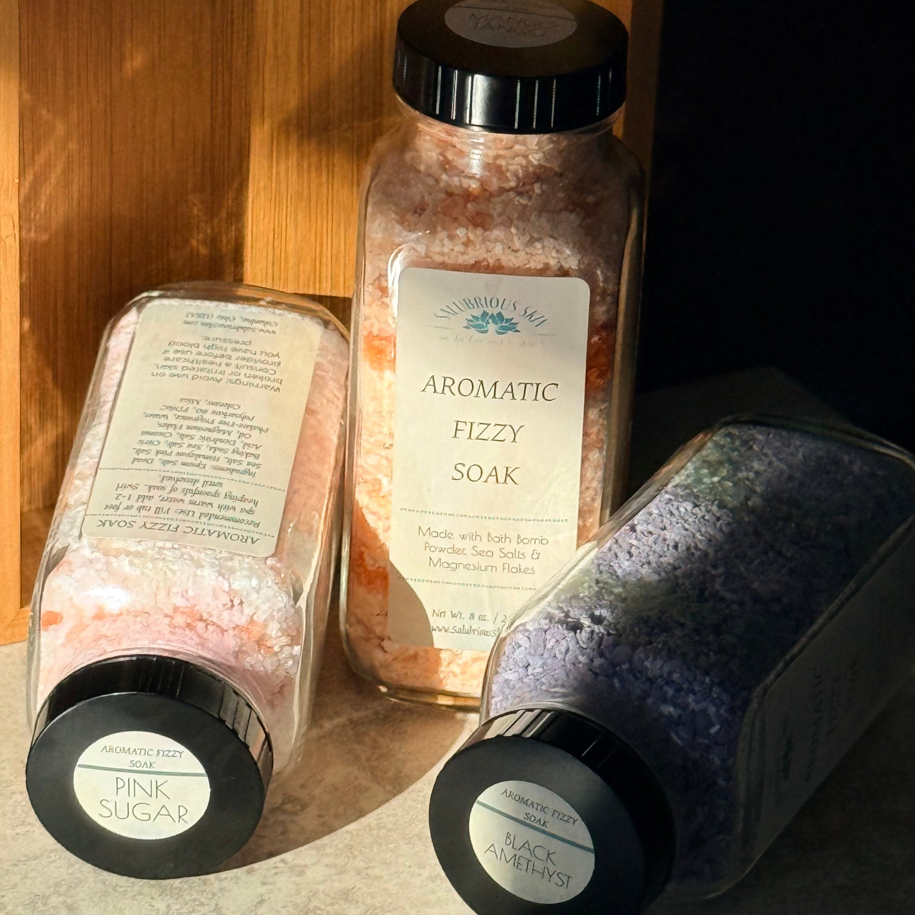Indulge in a sensorial soak experience where color, fragrance, and mineral-rich fizz meet. Handcrafted in small batches using a premium blend of Dead Sea salt, Himalayan pink salt, sea salts, magnesium flakes, and effervescent bath bomb powder, this soak releases a gentle fizz on contact—transforming your bath or foot soak into a luxurious escape.